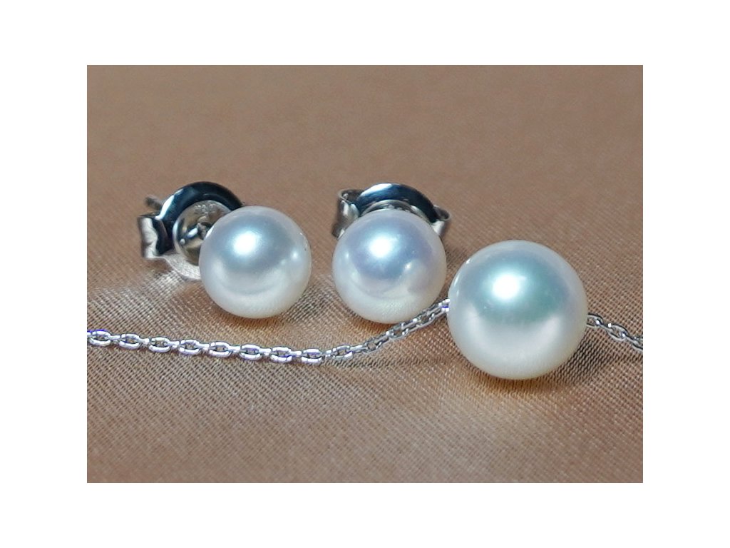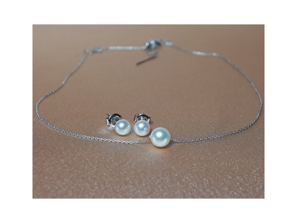 Az APSET020 perlgöngy ékszerszett tartalmazza az AE585AAAwP gyöngyös fehér arany fülbevalókat és az APN777WG gyöngyös nyakláncot. Az ékszerek valódi japán akoya tengeri gyöngyökből készülnek, AAA minőségben, 14 karátos (585/1000 finomságú) fehér arany foglalattal és lánccal.