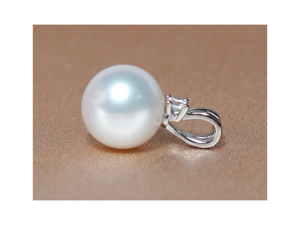 BC025WP-A gyöngy medál valódi japán fehér Akoya gyöngyből, fehér arany (Au585/1000) foglalattal. A AAA minőségű gyöngy kerek, sima felületű és nagyon magas fényű. A foglalat súlya kb. 0,35 g.