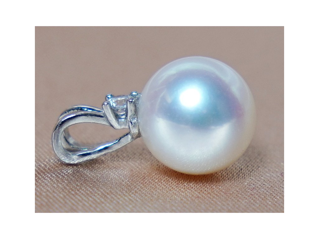 BC025SP-W gyöngy medál valódi fehér édesvízi gyöngyből és 925/1000 finomságú ezüst foglalattal. Az AAA minőségű gyöngy kerek formájú, sima felületű és rendkívül fényes. A foglalat súlya kb. 0,3 g, a cirkónia mérete 2,3 mm.