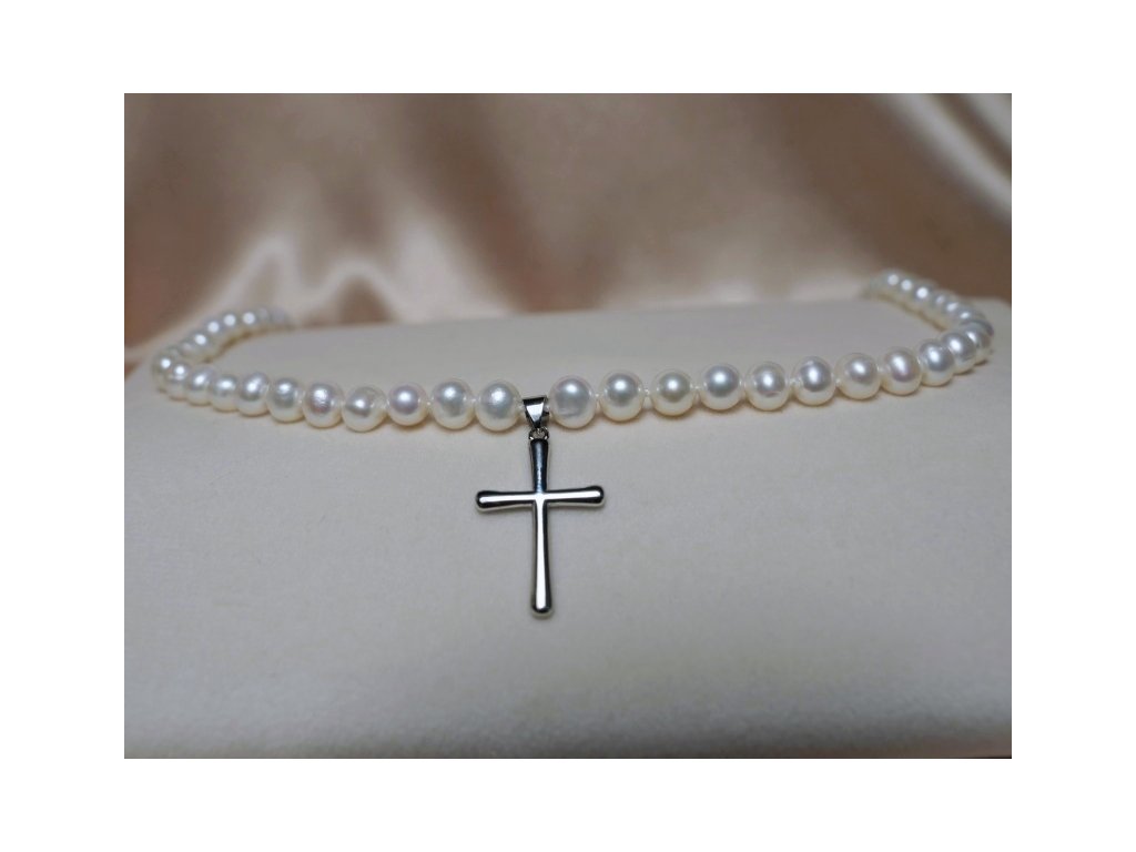 A gyöngy nyaklánc kereszt medállal a hit, a lelki kapcsolódás, a védelem és a belső erő szimbóluma. Ez az egyedi nyaklánc mélyen személyes ajándék lehet.