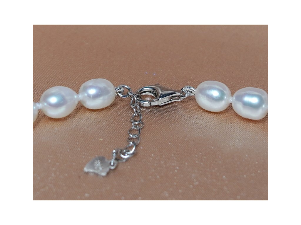 Mindkettőt 925/1000 finomságú ezüst zár és lánc végzi, amellyel a hossz 2 cm-rel meghosszabbítható, így a gyöngyök hossza rugalmasan illeszkedik minden ruhához és a viselet biztonságos marad.