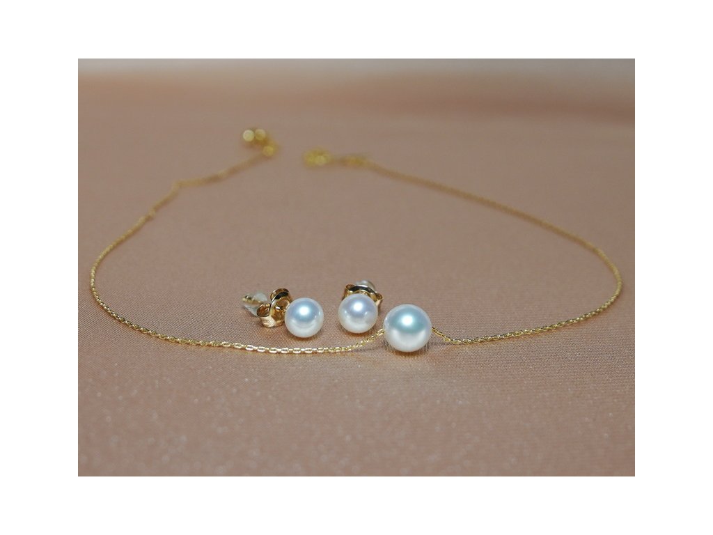 Az ékszerek valódi fehér édesvízi gyöngyből, a legmagasabb AAA minőségben, valamint 14 karátos sárga aranyból (585/1000 finomság) készült szerelékekből és láncból állnak.