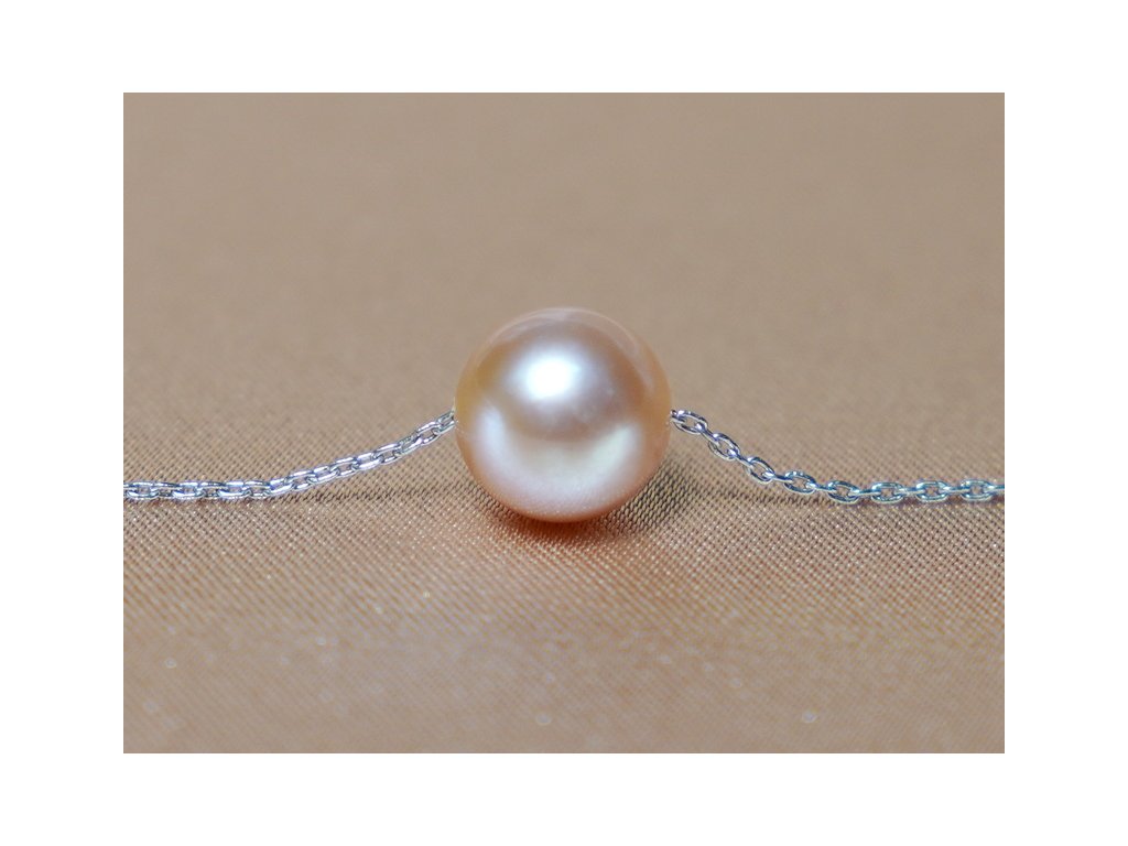 Ez a gyönyörű nyaklánc valódi, kerek rózsaszín édesvízi gyöngyből készült, AAA minőségben, állítható 14 karátos fehér arany lánccal (585/1000) AUCHP05.