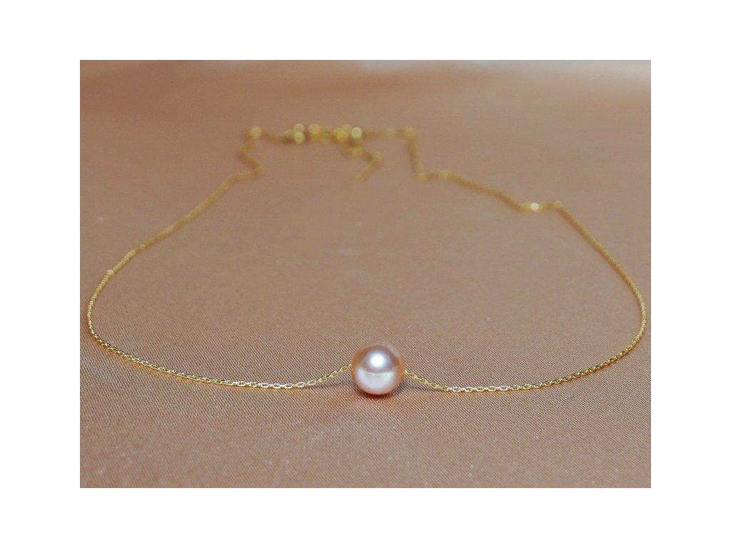 Ez a gyönyörű nyaklánc valódi, kerek rózsaszín édesvízi gyöngyből készült, AAA minőségben, állítható 14 karátos sárga arany lánccal (585/1000) AUCHP04.